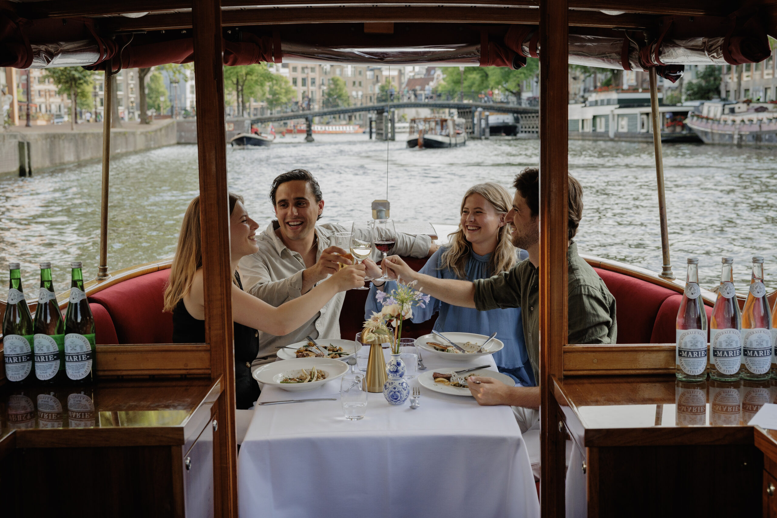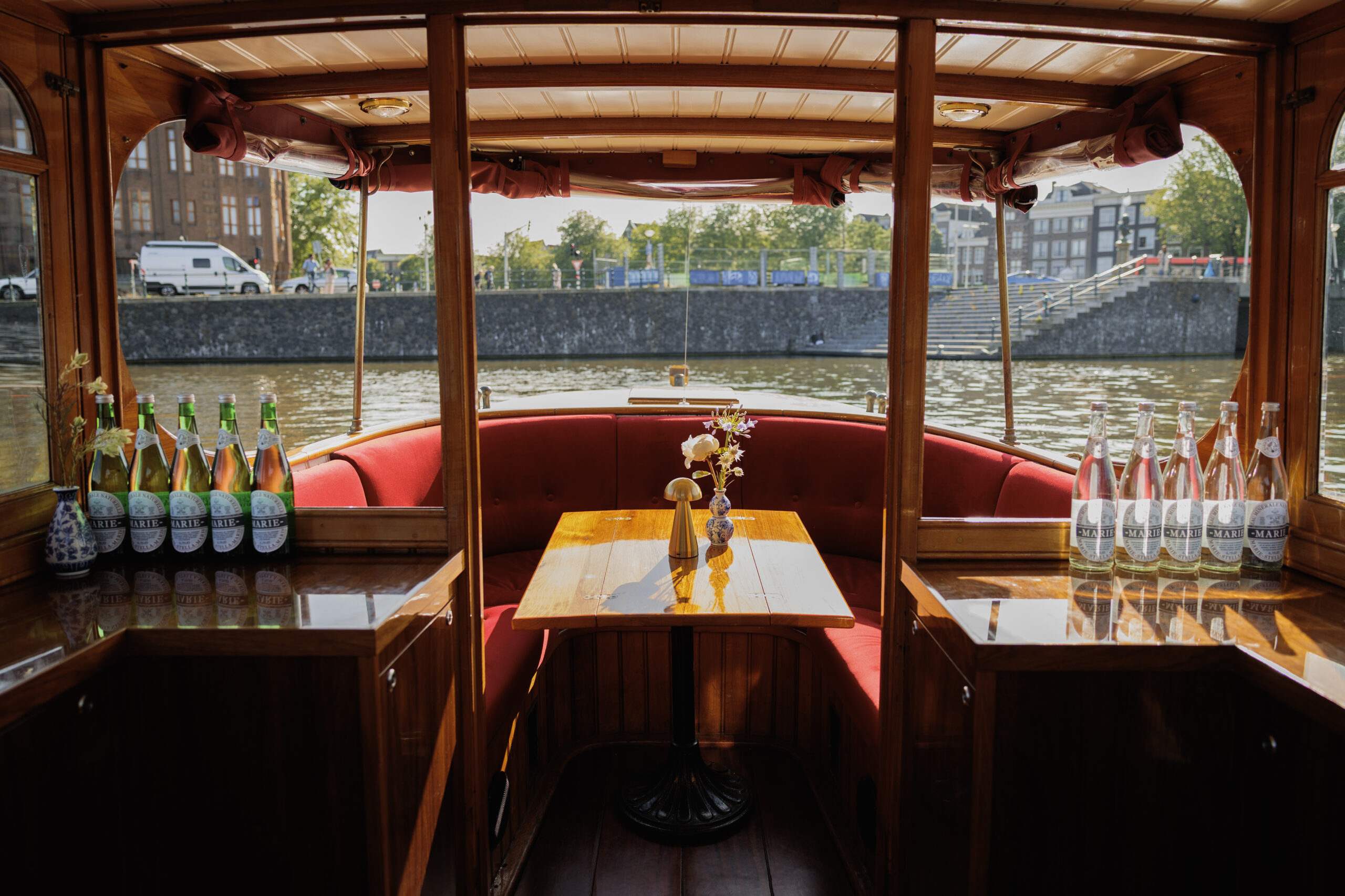 Let yourself be transported on a journey through time as you cruise along the beautiful canals of Amsterdam, surrounded by the comfort and allure of a bygone era.