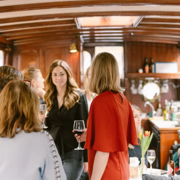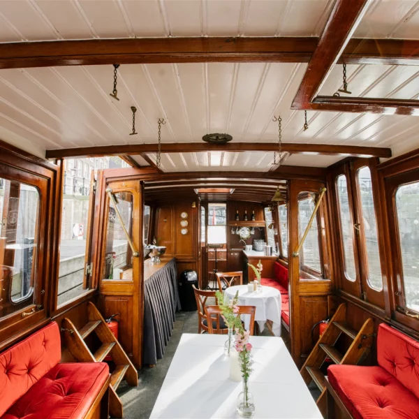 The Ondine is an extraordinarily beautiful, very luxurious, and authentic Amsterdam saloon boat from the renowned shipyard ‘t Kromhout. Of course, she is now equipped with all modern and luxurious facilities, ensuring that nothing will be lacking during your cruise through the canals of Amsterdam or the surrounding areas. Many possibilities are available on board this favorite. From simple cruising to a luxurious haute cuisine dinner, a festive private event, or a business meeting. In winter, she is well-heated, and in summer, the sides can be opened for an optimal sailing experience. You can also enjoy the spacious rear balcony. With her exceptional headroom, she welcomes all guests with great pleasure.